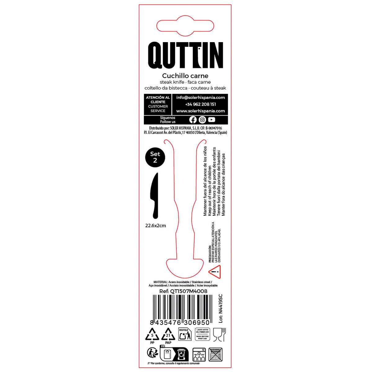 Jei jums patinka rūpintis kiekviena namų detale ir turėti pažangiausius produktus, palengvinančius gyvenimą, įsigykite Dantytas peilis Quttin MOMA 22,6 x 2 cm 2 Dalys (12 vnt.) už geriausią kainą.