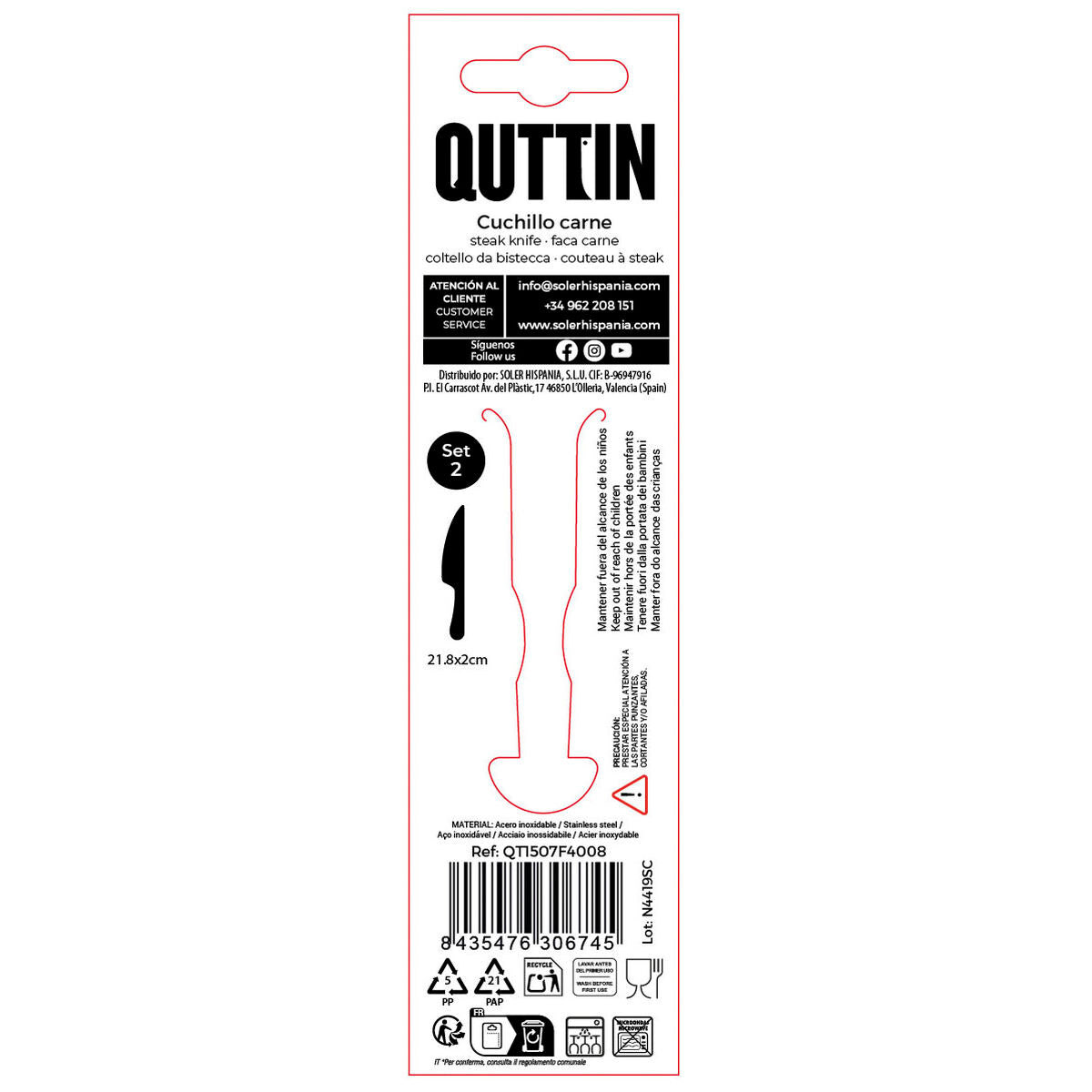 Jei jums patinka rūpintis kiekviena namų detale ir turėti pažangiausius produktus, palengvinančius gyvenimą, įsigykite Dantytas peilis Quttin Sofia 21,8 x 2 cm 2 Dalys (12 vnt.) už geriausią kainą.