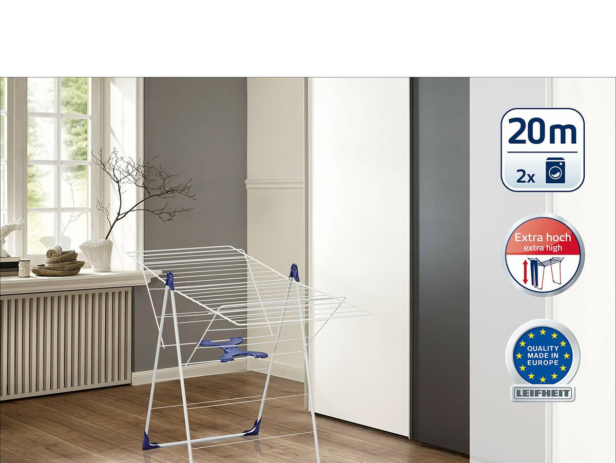 Jei jums patinka rūpintis kiekviena namų detale ir turėti pažangiausius produktus, palengvinančius gyvenimą, įsigykite Drabužių linija Leifheit 81408 CLASSIC 200 Flex Plienas polipropileno Plastmasinis Mėlyna Balta 20 m už geriausią kainą.