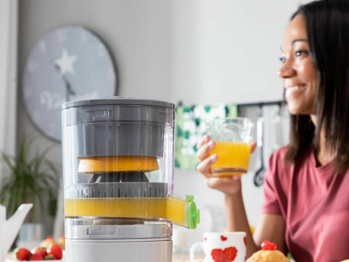 Ši įkraunama automatinė sulčiaspaudė efektyviai, greitai ir paprastai išspaudžia sultis iš citrusinių ir kitų vaisių, nespaudžiant vaisių rankomis. Ši sulčiaspaudė yra nešiojama, gali būti išardyta, turi nenulašantį kamštį ir valymo šepetėlį. 40 W, 250 ml.