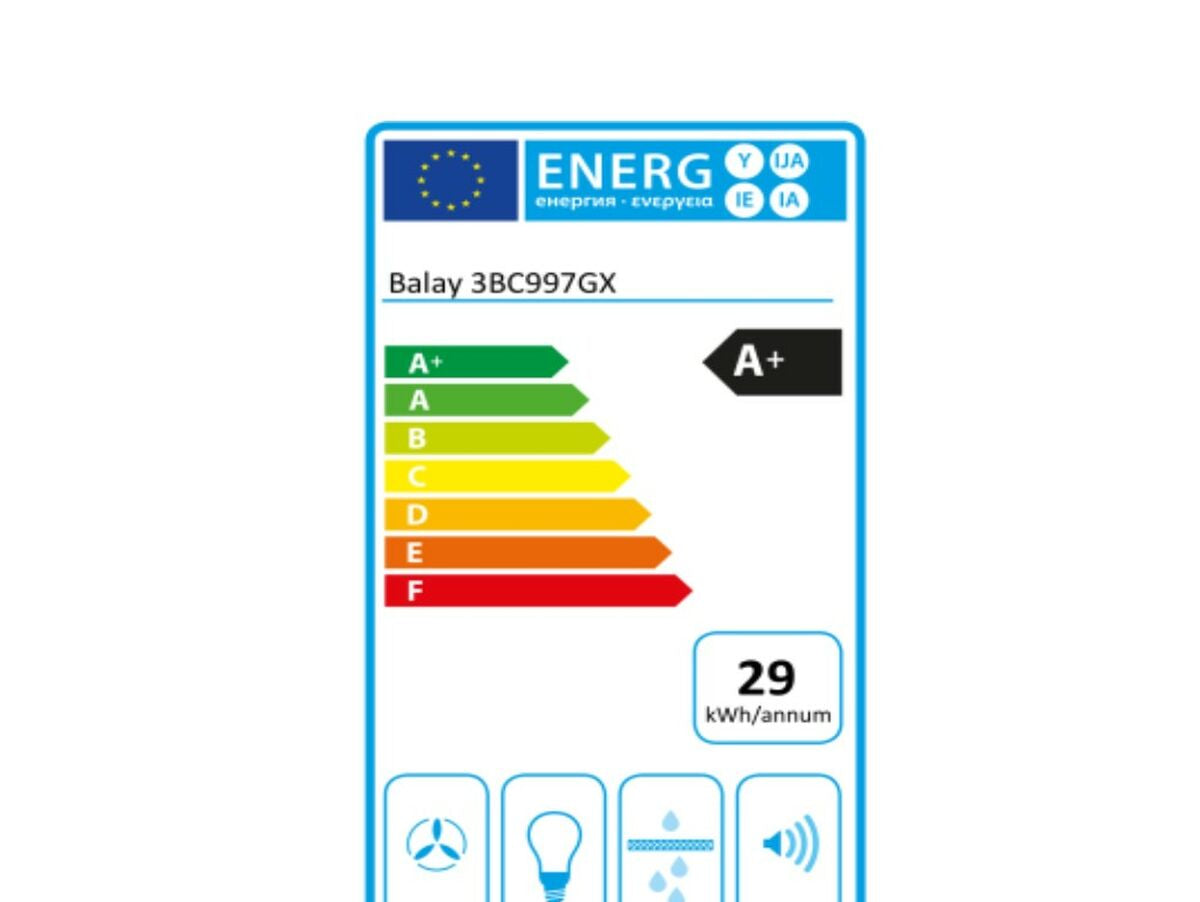 Įprastas gaubtas Balay 3BC997GX 90 cm 721 m³/h 140W A+ Sidabras Plienas 15.0 kg