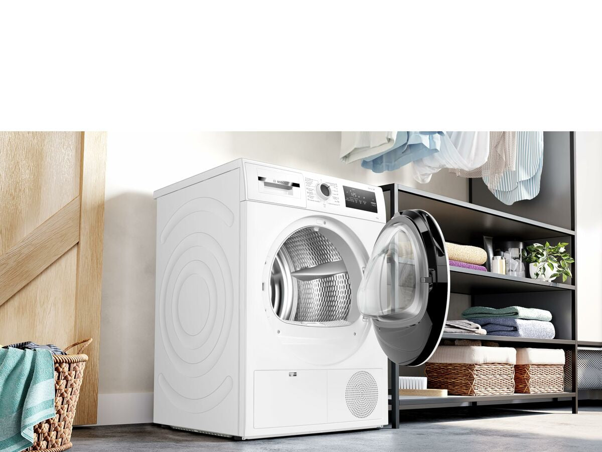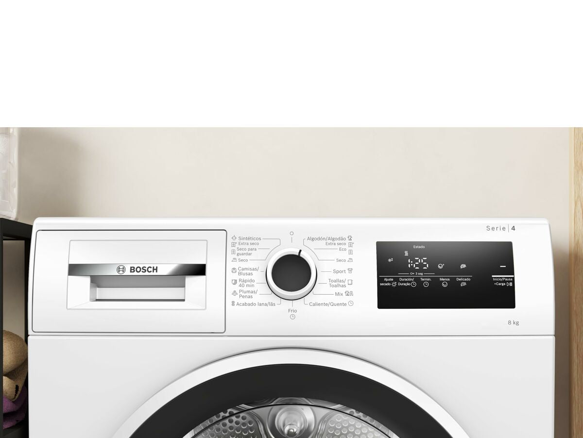 Bosch džiovyklė su šilumos siurblio sistema siūlo efektyvų ir pažangų drabužių priežiūros sprendimą, derindama technologijas ir funkcionalų dizainą prietaise su 8 kg talpa, idealiu vidutinio dydžio namams. Ji turi 60 cm plotį, kuris patogiai telpa daugumoje skalbimo zonų. A++ energijos klasė užtikrina mažą elektros suvartojimą, todėl tai ekologiškas ir ekonomiškas pasirinkimas kasdieniam naudojimui. Baltos spalvos modelis suteikia švarų ir universalų estetinį vaizdą, tinkantį įvairiems interjero stiliams, o taip pat yra juodos spalvos variantas tiems, kurie renkasi santūrų ir modernų apdailą. Įmontuotas ekranas palengvina daugelio džiovinimo programų pasirinkimą ir valdymą, įskaitant specialias programas jautriems audiniams, tokiems kaip vilna, marškinėliai, sportinė apranga, rankšluosčiai ir patalynė, taip pat greitus ciklus skubiems poreikiams. Šilumos siurblio sistema leidžia švelnesnį džiovinimą, saugant audinių pluoštus dėl žemesnės temperatūros nei tradicinėse džiovyklėse, prailgindama drabužių tarnavimo laiką ir apsaugodama nuo perkaitimo. Taip pat yra iki 24 val. vėlinimo funkcija, suteikianti patogumo ir lankstumo planuojant džiovinimo ciklus pagal naudotojo galimybes ir namų tvarkaraštį. Prietaisas veikia 65 dB triukšmo lygiu, derindamas galią ir tylą, kad netrukdytų namų aplinkoje. Šis Bosch modelis yra efektyvi alternatyva ieškantiems patikimo veikimo, energijos taupymo ir pritaikomumo kasdieniam džiovinimui, jungiantis pažangias technologijas ir paprastą naudojimą praktiškame ir tvirtame dizaine.