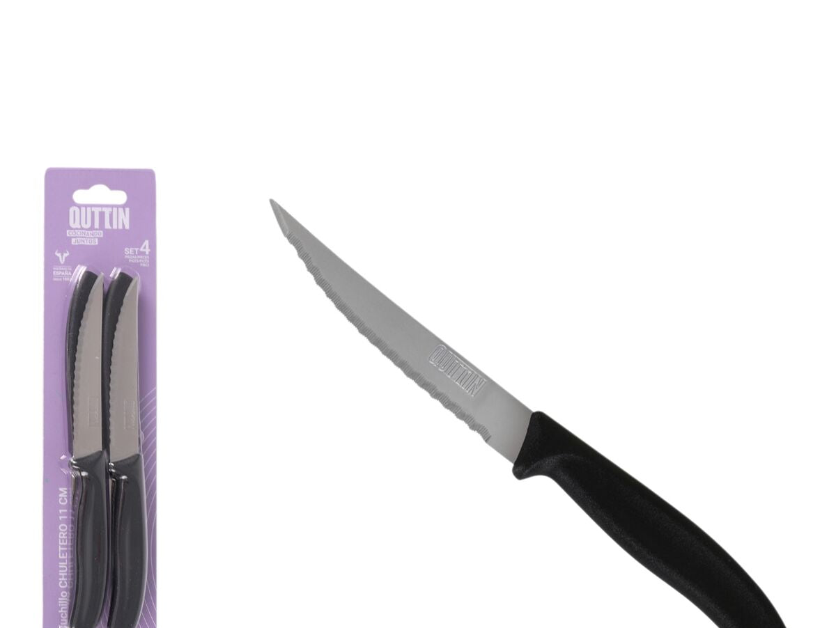 Jei jums patinka rūpintis kiekviena namų detale ir turėti pažangiausius produktus, palengvinančius gyvenimą, įsigykite Mėsos peilių rinkinys Quttin Juoda Sidabras Nerūdijantis plienas 11 cm 4 Dalys (18 vnt.) už geriausią kainą.