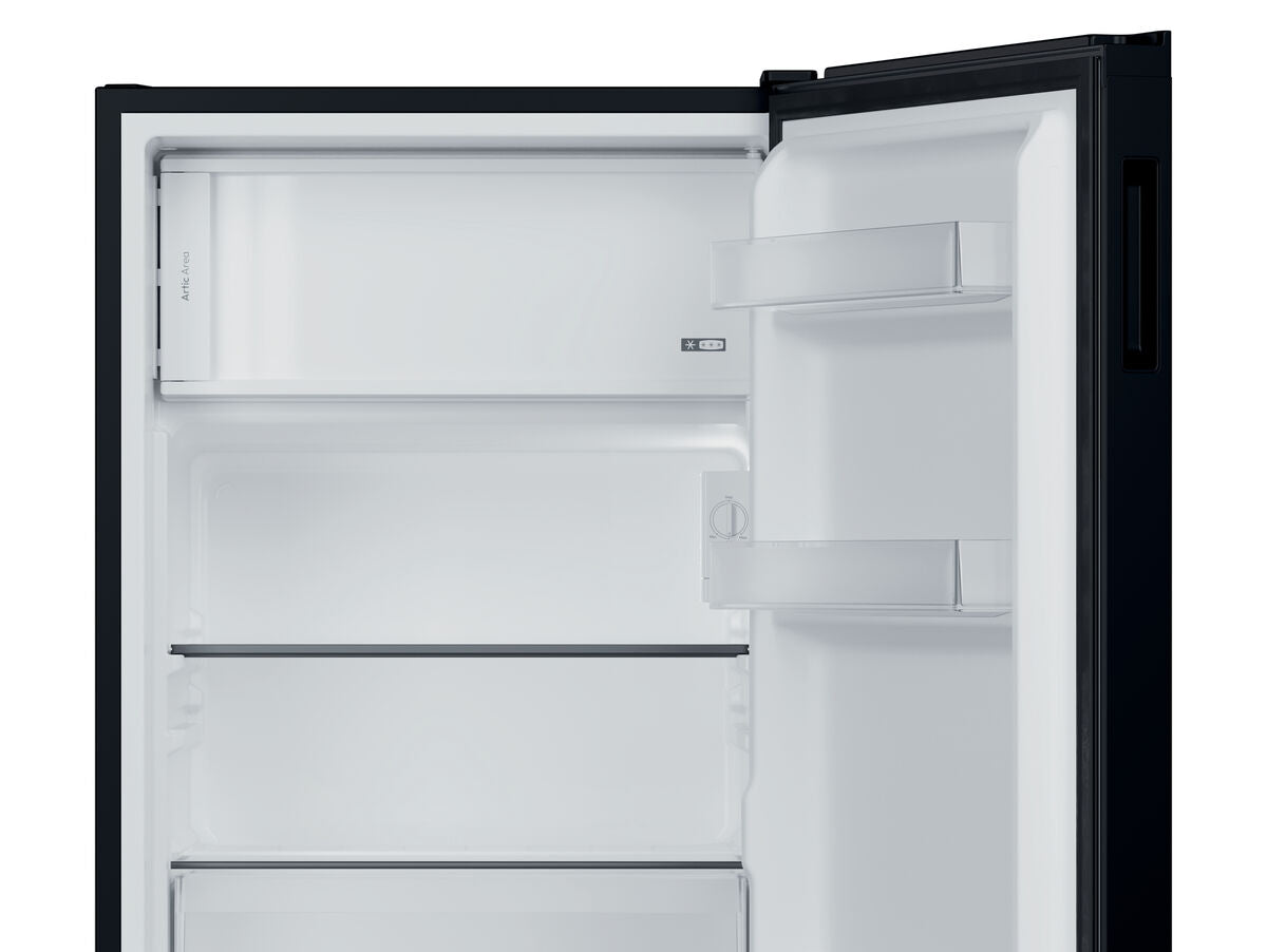 Candy mini šaldytuvas CNOQ2S58EB 85 juodos spalvos yra kompaktiškas ir praktiškas sprendimas mažoms erdvėms, tokioms kaip biurai, miegamieji ar kemperiai. Su bendru 114 litrų talpos jis suteikia pakankamai vietos maistui ir gėrimams laikyti, efektyviai išlaikant jų šviežumą. Apytiksliai 85 cm aukščio ir 54,5 cm pločio matmenys leidžia lengvai integruoti į įvairias patalpas neužimant daug vietos. Energijos klasė E rodo vidutinį suvartojimą, tinkantį ieškantiems efektyvumo ir funkcionalumo pusiausvyros. Triukšmo lygis apie 37 dB užtikrina santykinai tylų veikimą, tinkantį vietoms, kur reikalingas mažas triukšmas. Veikia 50 Hz dažniu ir 200-240 V įtampa, suderinama su dauguma standartinių elektros tinklų Europoje. Durys atsidaro į dešinę, palengvinant naudojimą specifinėse erdvėse pagal išdėstymą. Nors neturi įmontuoto ekrano, jo santūrus ir kompaktiškas dizainas bei apie 2 kg per 24 valandas šaldymo tūris leidžia patenkinti pagrindinius šaldymo ir užšaldymo poreikius. Šis Candy modelis yra funkcionali pasirinktis ieškantiems mini šaldytuvo mažo dydžio, tinkamo kasdieniam naudojimui su paprastu, bet veiksmingu dizainu.