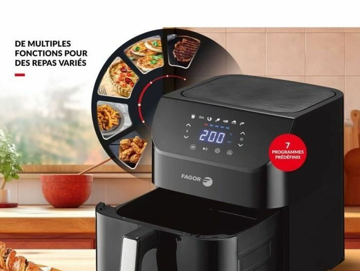 Fagor FGAF8L oro gruzdintuvė yra prietaisas, skirtas sveikam ir efektyviam maisto gaminimui be tradicinio aliejaus. Ji turi 1800 W galingumą, užtikrinantį greitą ir tolygų įkaitimą, leidžiantį gauti traškų maistą išorėje ir sultingą viduje su mažesniu riebalų kiekiu. Dėl didelės, 8 litrų talpos ji yra puikus pasirinkimas ruošiant patiekalus visai šeimai ar susibūrimams, suteikiant lankstumo kiekio ir patiekalų įvairovei. Modelis pasižymi elegantišku juodos spalvos dizainu, kuris lengvai pritaikomas bet kurioje šiuolaikinėje virtuvėje, taip pat turi patogų jutiklinį ekraną, palengvinantį funkcijų pasirinkimą ir valdymą. Svarbiausios savybės – 7 iš anksto nustatyti kepimo programos, supaprastinančios įvairių patiekalų gamybą, optimizuojančios laiką ir temperatūrą be sudėtingų nustatymų. Taip pat įmontuotas laikmatis suteikia patogumo ir saugumo, leidžiant tiksliai nustatyti kepimo laiką, išvengiant perkepimo ar rankinio išjungimo. Maitinimas vyksta per ES tipo kištuką, atitinkantį Europos elektros standartus. Ši Fagor oro gruzdintuvė be aliejaus derina efektyvumą, talpą ir intuityvią technologiją, siūlydama praktišką sprendimą sveikesnei mitybai, neprarandant tradicinio kepto maisto skonio ir tekstūros. Jos dizainas ir funkcijos daro ją patikimu ir universaliu buitinės technikos prietaisu, tinkamu tiems, kurie nori naujovių virtuvėje su moderniais ir mažiau kaloringais gaminimo būdais.