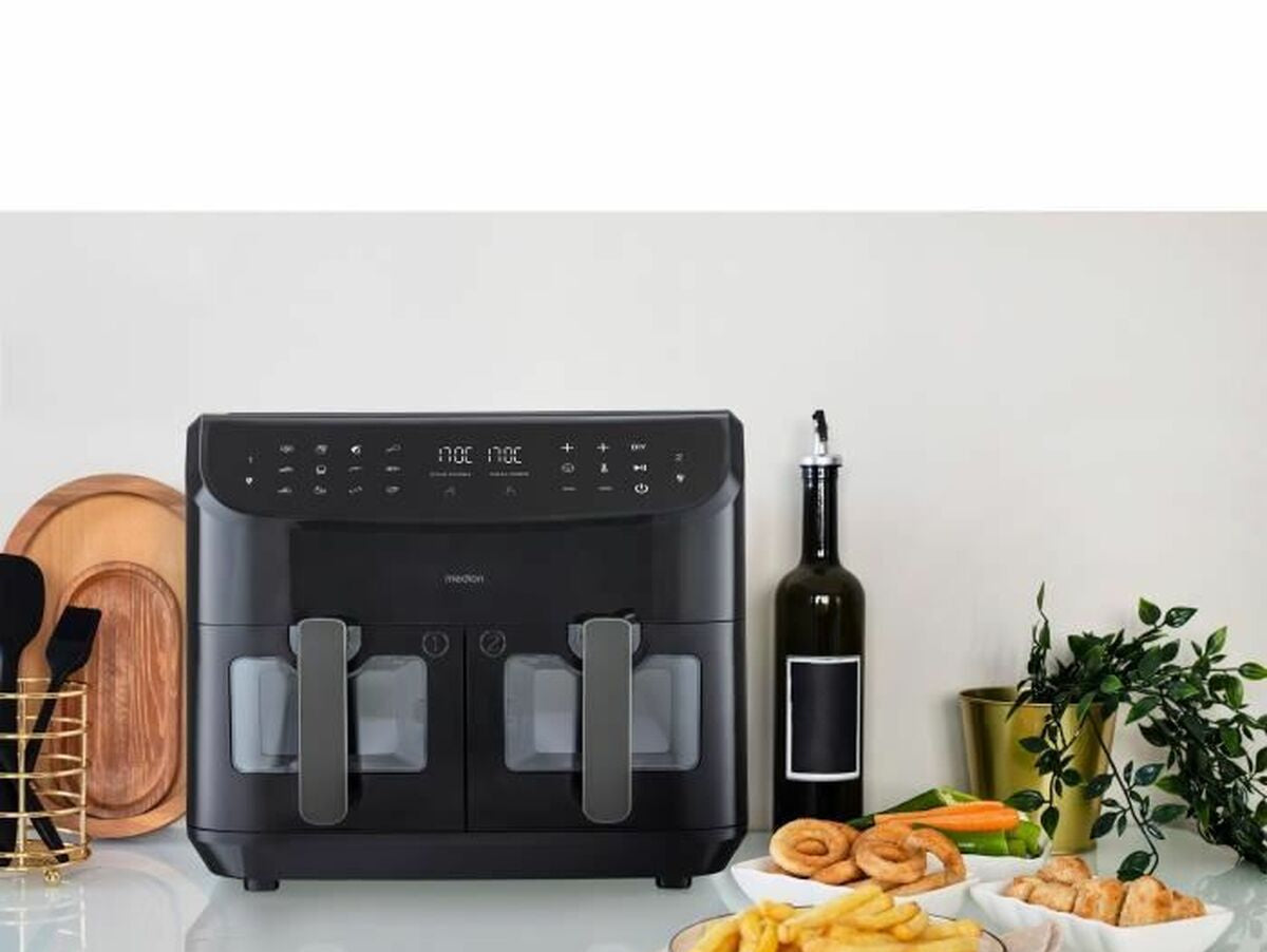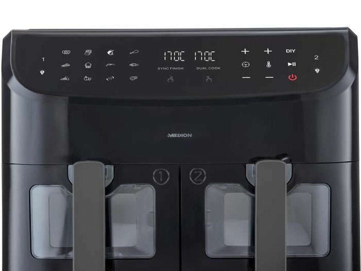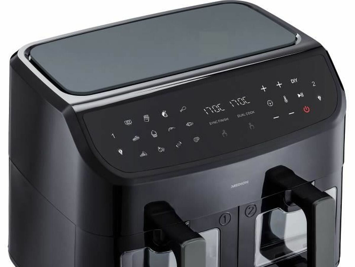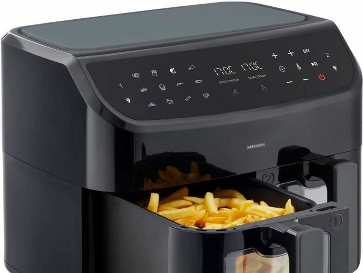 Medion LIFE P20 oro gruzdintuvė yra prietaisas, sukurtas sveikam ir efektyviam maisto gaminimui, tinkantis tiems, kurie nori maksimaliai išnaudoti talpą ir funkcionalumą virtuvėje. Su 2600 W galia ši gruzdintuvė greitai įkaista ir tolygiai paskirsto karštą orą, kad patiekalai būtų traškūs išorėje ir sultingi viduje, nenaudojant aliejaus. Išsiskiria didele 8,7 litrų talpa, leidžiančia gaminti didesnėms šeimoms ar vienu metu paruošti didesnį kiekį maisto. Turi inovatyvią sistemą su dviem atskirais krepšeliais, leidžiančią gaminti skirtingus patiekalus vienu metu nesimaišant skoniams, kas didina universalumą ir efektyvumą ruošiant įvairius valgius. Pagaminta iš nerūdijančio plieno, užtikrinančio patvarumą ir atsparumą, su elegantišku juodos spalvos dizainu, derančiu prie bet kokios virtuvės stiliaus. Krepšeliai padengti nelimpančia medžiaga, kas palengvina valymą ir neleidžia maistui prilipti, užtikrinant patogų naudojimą. Ši gruzdintuvė turi 9 iš anksto nustatytus programų režimus, leidžiančius lengvai pasirinkti tinkamiausią kepimo būdą įvairiems maisto produktams – nuo bulvių iki mėsos ar kepinių, prisitaikant prie kasdienių poreikių be sudėtingumo. Europos tipo kištukas užtikrina suderinamumą su standartiniais elektros lizdais Lietuvoje ir Europoje. Medion LIFE P20 yra tvirta ir funkcionali didelės talpos oro gruzdintuvė, tinkama tiems, kurie vertina patogumą, daugybę funkcijų ir ilgaamžišką namų įrangą.