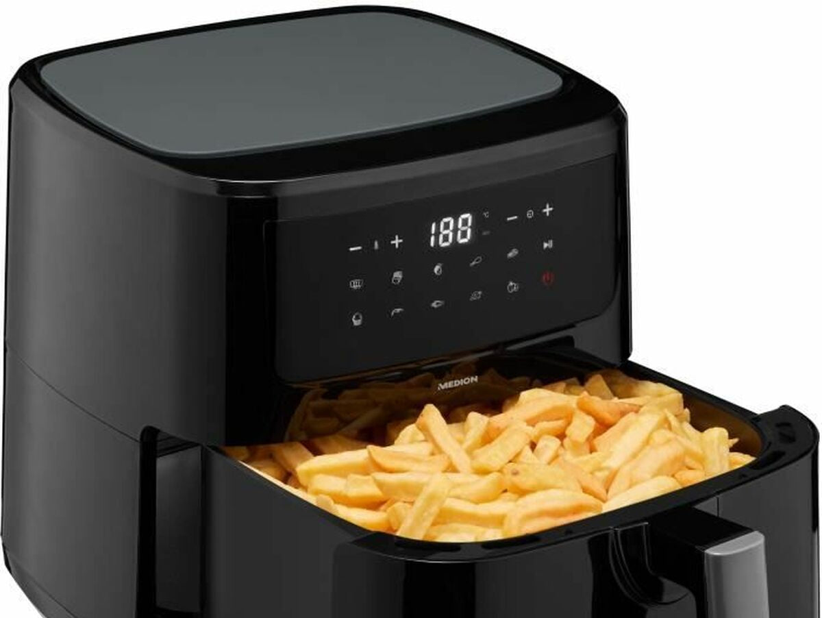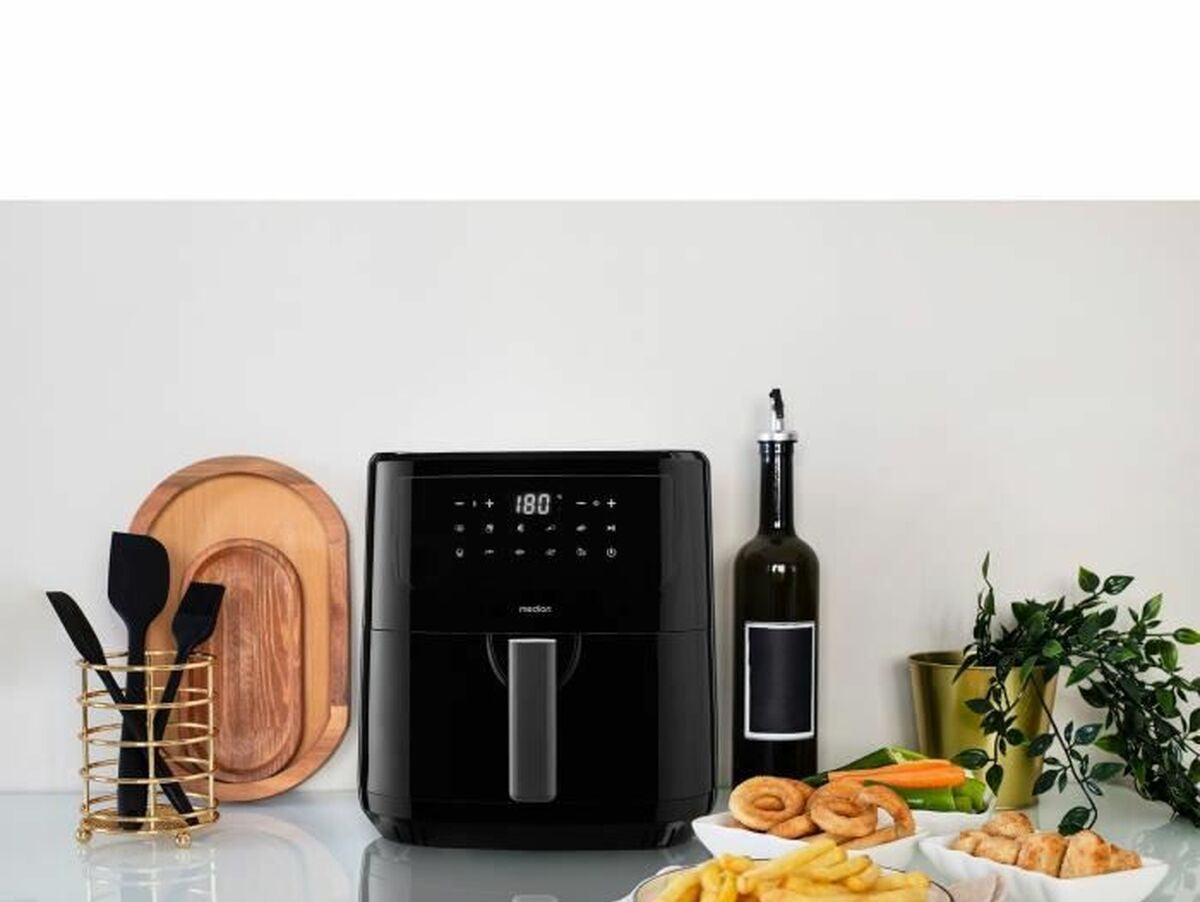 Medion MD11750 oro gruzdintuvė yra prietaisas, skirtas efektyviam ir sveikam maisto gaminimui, naudojant karšto oro technologiją, leidžiančią paruošti traškius patiekalus be didelio kiekio aliejaus. Su 2150 W galia užtikrina greitą ir tolygų įkaitimą, sutrumpinant gaminimo laiką ir suteikiant optimalius rezultatus nuo pirmo karto. Jos 6,8 litrų talpa tinka šeimoms arba didesnėms porcijoms, puikiai pritaikyta įvairiems receptams. Konstrukcija pagaminta iš metalo, todėl prietaisas yra patvarus ir tvirtas, o juodos spalvos apdaila suteikia modernų ir subtilų vaizdą, tinkantį bet kuriai šiuolaikinei virtuvei. Be to, įrengta jutiklinė ekranas, leidžiantis lengvai ir intuityviai pasirinkti funkcijas bei meniu, o 9 iš anksto nustatyti programos supaprastina įvairių patiekalų paruošimą, prisitaikant prie skirtingų kulinarinių poreikių. Modelis naudoja Europos kištuką, užtikrinantį suderinamumą ir saugumą šalyse, kuriose naudojama tokio tipo jungtis. Ši oro gruzdintuvė derina didelę talpą ir galią su modernia sąsaja bei įvairiais gaminimo režimais, todėl yra praktiškas ir efektyvus įrankis tiems, kurie ieško būdų gaminti su mažiau aliejaus, išlaikant maisto skonį ir tekstūrą.