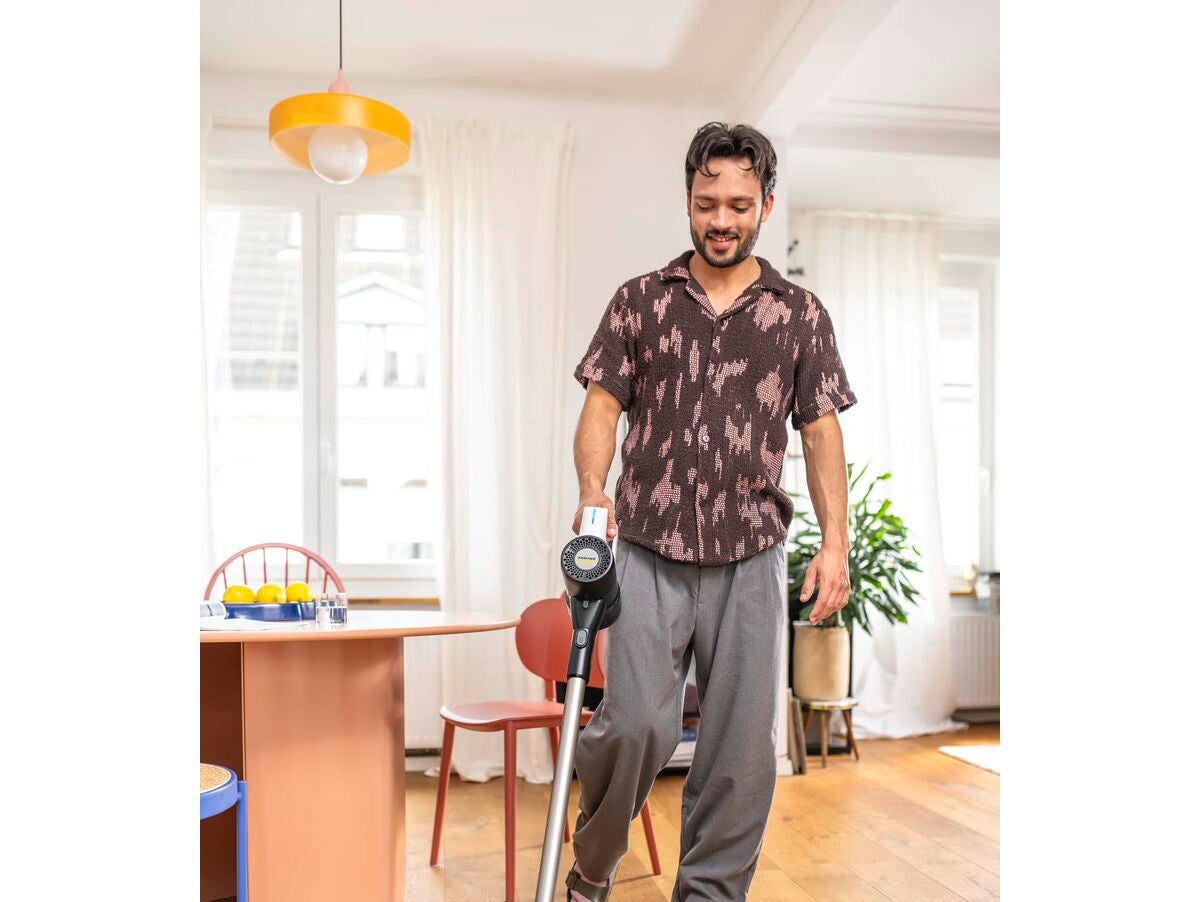 Kärcher dulkių siurblys šluota yra įrenginys, sukurtas efektyviam ir universaliam namų valymui, derinantis lengvo dulkių siurblio patogumą su tradicinės šluotos funkcionalumu. Šio tipo dulkių siurblys išsiskiria lengvu valdymu ir mobilumu, leidžiančiu greitai pasiekti kietas grindis ir vidutinio dydžio kilimus be laidų, kurie ribotų veikimo nuotolį, todėl suteikia didesnę autonomiją ir laisvę naudojimo metu. Dėl savo konstrukcijos jis ypač naudingas greitiems ir detaliems darbams, lengvai prasiskverbiant po baldais ir siaurose vietose dėl ilgo ir ergonomiško dizaino. Nors konkretus modelis nėra nurodytas, Kärcher dažnai naudoja technologijas, optimizuojančias siurbimo galią ir dalelių filtravimą, kas gerina oro kokybę ir užtikrina gilų valymą be pastangų. Jo dizainas derina lengvumą su tvirtumu, palengvindamas transportavimą ir laikymą be didelio vietos užėmimo. Apibendrinant, šis dulkių siurblys šluota yra praktiškas sprendimas kasdieniam namų priežiūrai, tinkamas vartotojams, ieškantiems paprasto, veiksmingo įrenginio su patikimos valymo prekės ženklo garantija.