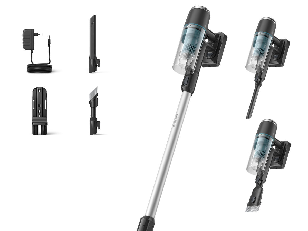 Philips Aspiratorius XC3031/01 sujungia valymo galią su lengvu ir funkcionaliu dizainu, idealiai tinkančiu tiems, kurie nori išlaikyti savo namus nepriekaištingus be jokių komplikacijų. Turintis mėlyną ir juodą spalvą, šis aspiratorius išsiskiria ne tik savo estetika, bet ir pažangia technologija. Įrengtas LED apšvietimu, jis leidžia apšviesti tamsias vietas, kol siurbiate, užtikrinant, kad nepamiršite jokio kampo. Jo maitinimas baterijomis suteikia laisvę judėti, kad galėtumėte valyti bet kurioje namų vietoje be kabelių apribojimų, o be maišelio dizainas daro prietaiso valymą itin paprastą ir nesudėtingą. Su 80 dB triukšmo lygiu, mėgausitės efektyviu veikimu, kuris, nors ir girdimas, nėra pernelyg trikdantis. Šis lazda aspiratorius yra universalus ir praktiškas pasirinkimas tiems, kurie vertina našumą ir patogumą valymo darbuose. Su Philips XC3031/01 aspiratoriumi kiekvienas valymas tampa lengvesne ir efektyvesne patirtimi, užtikrinant, kad jūsų namai visada atrodytų nepriekaištingai.