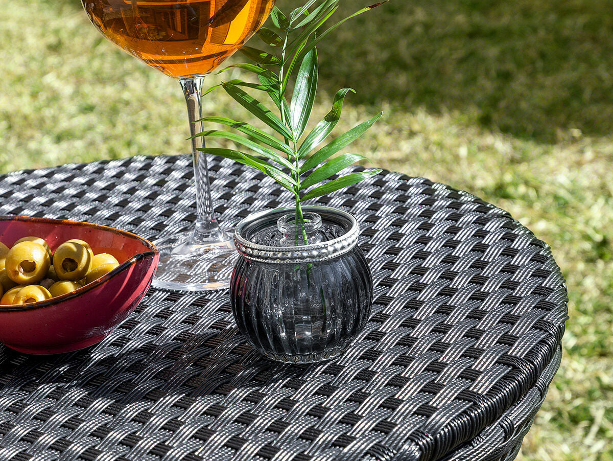 Rataninis staliukas, kuris dėl reguliuojamo aukščio yra labai universalus. Daugiafunkcis: kokteilių staliukas, kavos staliukas, šoninis staliukas ir t. t. soduose, terasose, kiemeliuose, baseinuose ir t. t.