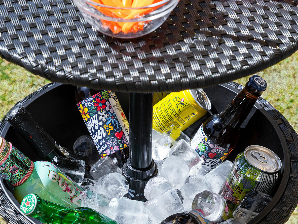 Šis sodo staliukas-aušintuvas idealiai tinka mėgautis lauko vakarėlių ir linksmybių dienomis. Atsparus vandeniui, stabilus ir saugus. Reguliuojamas aukštis, reguliuojamos kojelės, ledo ir gėrimų skyrius (20 l), dangtis ir drenažo grotelės.