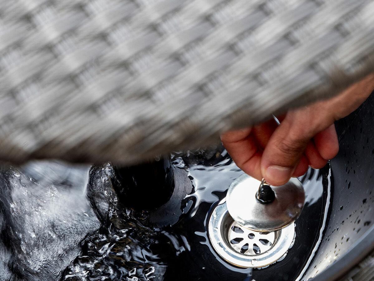 - Drenažo kamštis ir grotelės: mūsų staliukas gėrimų aušintuvas turi drenažo kamštį ir groteles, kad būtų lengviau išvalyti ir išpilti vandenį iš ištirpusio ledo. Be to, 4 mažos reguliuojamos kojelės ant atraminio pagrindo užtikrina visišką stabilumą ir laikymąsi.
