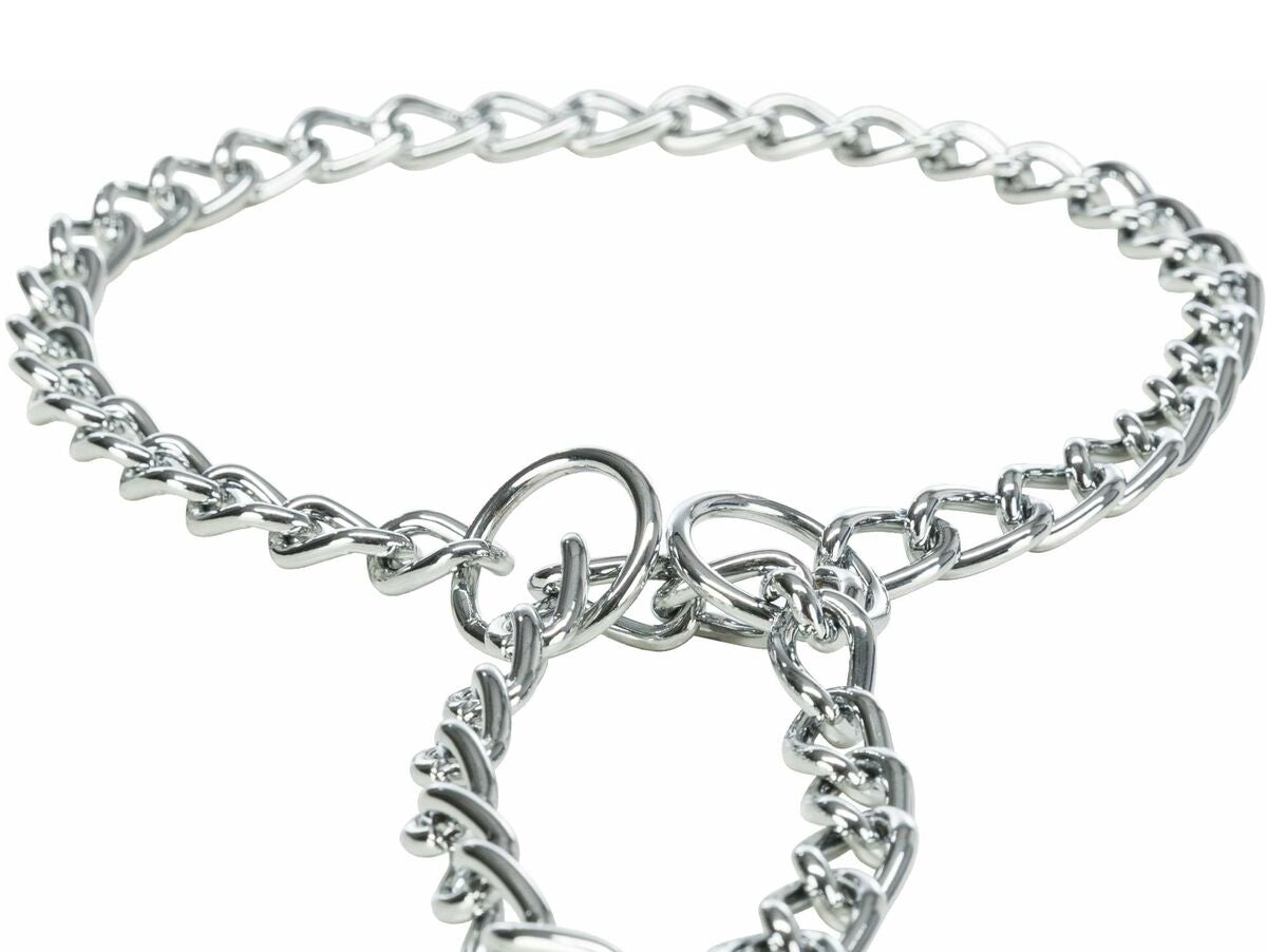Trixie prekės ženklo šunų dresūros antkaklis sukurtas efektyviam valdymui treniruočių metu, derinant funkcionalumą ir ilgaamžiškumą – tai būtinas aksesuaras šunų auklėjimui. Pagamintas iš chromuotos metalinės medžiagos, antkaklis užtikrina tinkamą atsparumą šuns jėgai, o chromuotas paviršius suteikia papildomą apsaugą nuo korozijos ir profesionalią išvaizdą. Dizainas pritaikytas specialiai šunims, leidžiantis patogiai ir saugiai valdyti elgesį, stiprinant norimus įgūdžius arba koreguojant nepageidaujamus. Metalinė konstrukcija garantuoja, kad antkaklis išlaikys formą ir efektyvumą ilgalaikio naudojimo metu, todėl tinka tiek intensyvioms treniruotėms, tiek profesionaliems treneriams ar savininkams, ieškantiems patikimo įrankio. Atsparių medžiagų ir chromuoto paviršiaus derinys taip pat užtikrina mažą priežiūros poreikį, palengvinant valymą po kiekvieno naudojimo. Apibendrinant, šis Trixie metalinis dresūros antkaklis yra praktiškas ir patvarus sprendimas tiems, kurie ieško tvirto ir specialiai šunų treniruotei pritaikyto produkto.