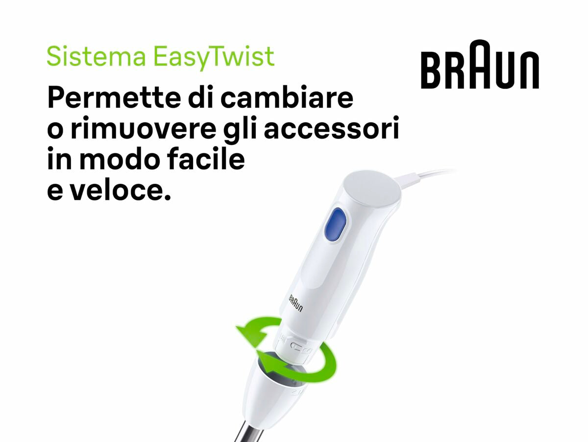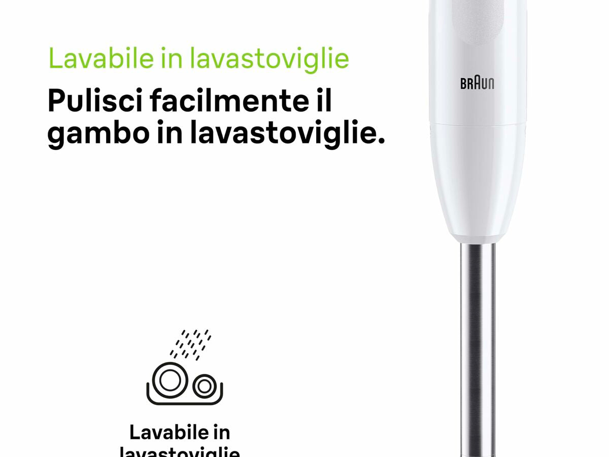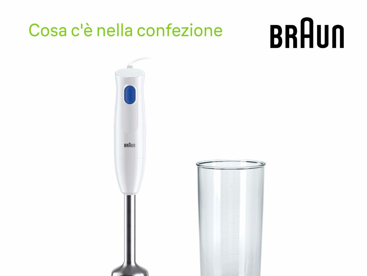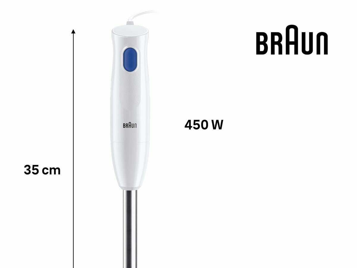Braun stiklinis trintuvas yra buitinė technika, skirta efektyviai ir patogiai ruošti mišinius bei kokteilius. Jis pasižymi elegantišku balto spalvos dizainu, kuris lengvai dera bet kurioje virtuvėje. Jo indelio talpa yra 600 ml, ideali paruošti individualias ar mažas porcijas be ingredientų švaistymo. Įrenginys turi 450 W galingumą, kuris suteikia pakankamai jėgos smulkinti ir maišyti įvairius ingredientus – nuo vaisių ir daržovių iki minkšto ledo, užtikrinant vienodus rezultatus kiekvieną kartą. Konstrukcijoje naudojama nerūdijančio plieno medžiaga, kuri garantuoja ilgaamžiškumą ir atsparumą nusidėvėjimui bei palengvina valymą po naudojimo. Maitinimas vyksta per 1,2 metro ilgio elektros laidą, leidžiantį patogiai prijungti prietaisą netoli darbo zonos be apribojimų. Šis trintuvas yra praktiškas ir funkcionalus įrankis tiems, kurie ieško patikimo produkto su pagrindinėmis funkcijomis kasdieniam maišymui virtuvėje, derinant kokybę ir efektyvumą kompaktiškame, lengvai valdomame formate.
