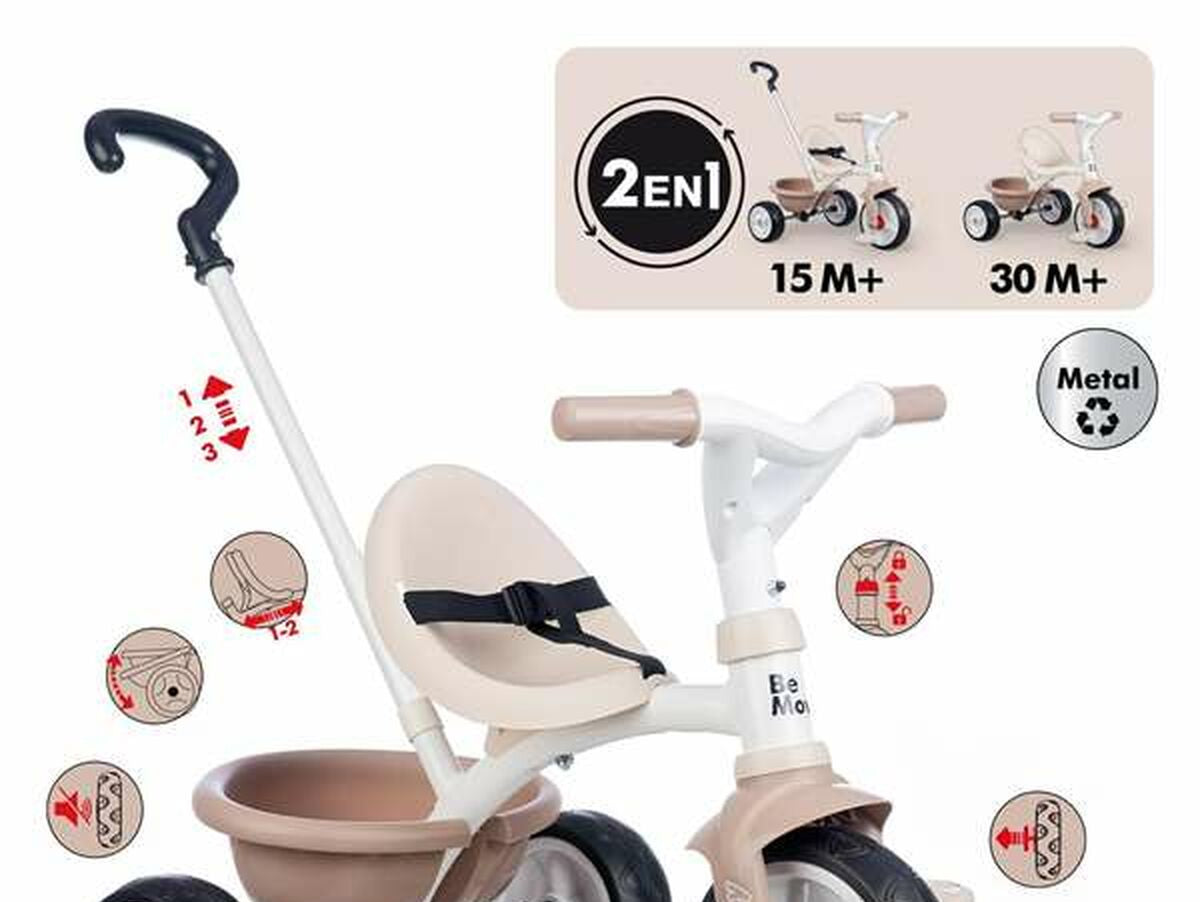 Smoby Be Move Beige triratukas yra idealus pradinis transporto priemonė vaikams nuo 3 metų, sukurtas lavinti koordinaciją ir pusiausvyrą pirmųjų lauko nuotykių metu. Šis triratukas išsiskiria elegantišku apdaila, suteikiančia modernumo ir rafinuotumo, puikiai derančia su funkcionalumu. Pagamintas iš tvirtų ir saugių medžiagų, jis turi patvarią konstrukciją, užtikrinančią stabilumą ir ilgaamžiškumą, pritaikytą mažų vaikų poreikiams. Ergonomiškas ir lengvas dizainas leidžia lengvai valdyti, kad vaikas galėtų patogiai ir pasitikėdamas minti pedalus tyrinėdamas aplinką. Be to, Smoby Be Move skatina ankstyvą motorikos vystymąsi ir savarankiškumą judant, skatinant aktyvų žaidimą lauke. Šis triratukas yra praktiškas ir patikimas pasirinkimas, derinantis saugumą, patrauklų dizainą ir paprastą naudojimą, specialiai sukurtas skatinti dinamišką vaikų mokymąsi. Produktas atitinka įprastus saugumo ir kokybės standartus, tinkamas prancūzakalbiams vaikams, atsižvelgiant į tai, kad naudojimo instrukcija ar etiketė yra prancūzų kalba. Apibendrinant, Smoby Be Move Beige triratukas siūlo tinkamą funkcionalumo, estetikos ir patvarumo pusiausvyrą, būdamas patogia alternatyva mažųjų judėjimo pradžiai.