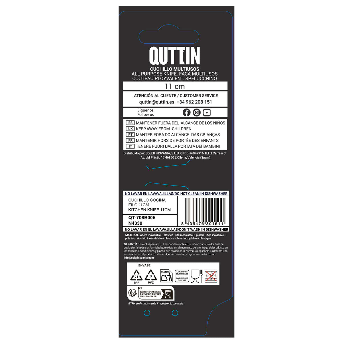 Jei jums patinka rūpintis kiekviena namų detale ir turėti pažangiausius produktus, palengvinančius gyvenimą, įsigykite Virtuvės peilis Quttin Laos Juoda Sidabras 11 cm 20 x 2 x 2 cm Daugkartinis naudojimas (36 Vienetai) už geriausią kainą.